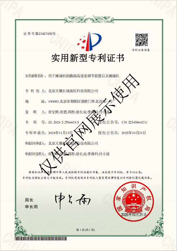 127.ZL 2024 2 2766619.5-实用新型-用于摊铺机的路面高度差调节装置以及摊铺机